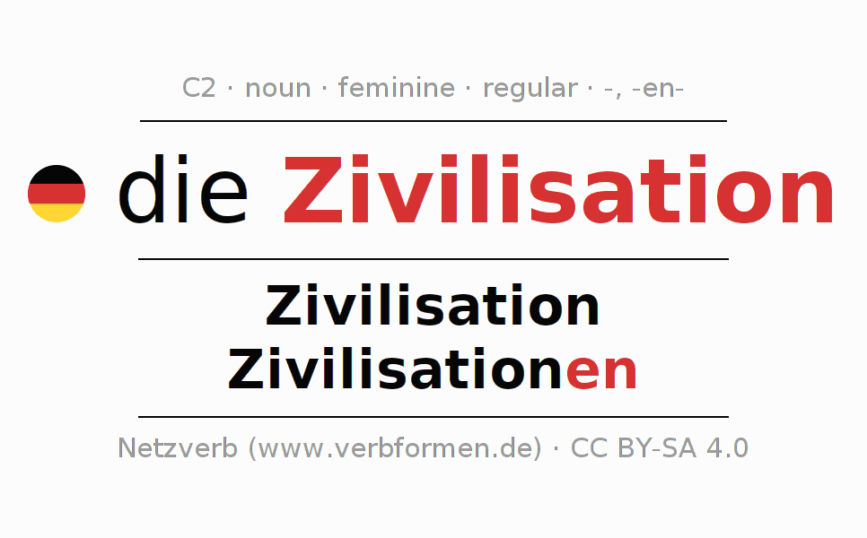 - Singular: die Zivilisation, der Zivilisation, der Zivilisation, die Zivilisation