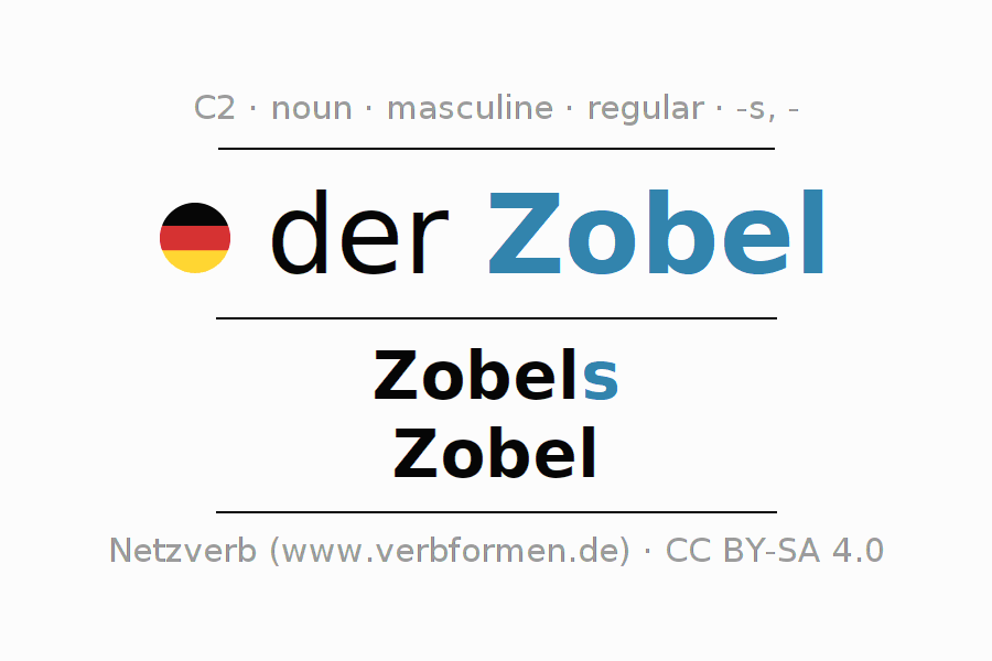 - Plural: die Zobel, der Zobel, den Zobeln, die Zobel