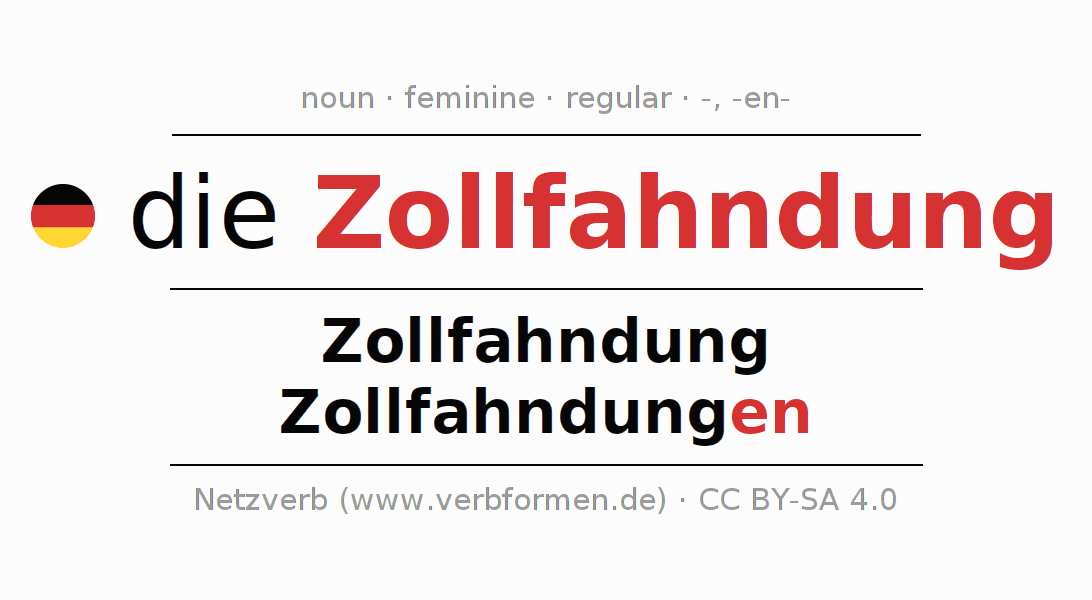 - Plural: die Zollfahndungen, der Zollfahndungen, den Zollfahndungen, die Zollfahndungen