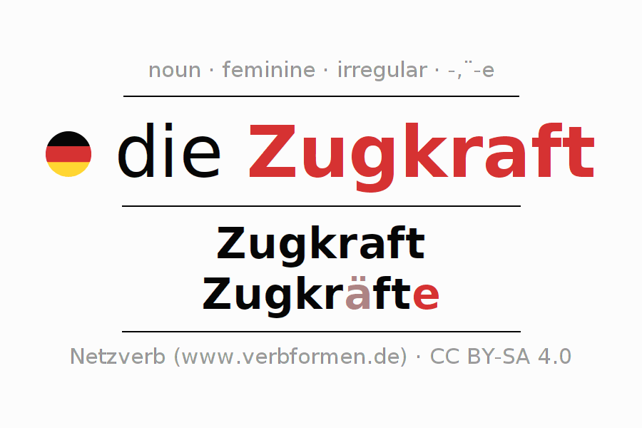 - Singular: die Zugkraft, der Zugkraft, der Zugkraft, die Zugkraft