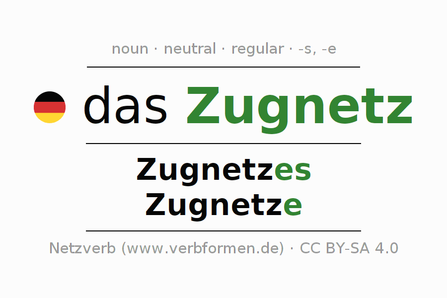 - Singular: das Zugnetz, des Zugnetzes, dem Zugnetz(e), das Zugnetz