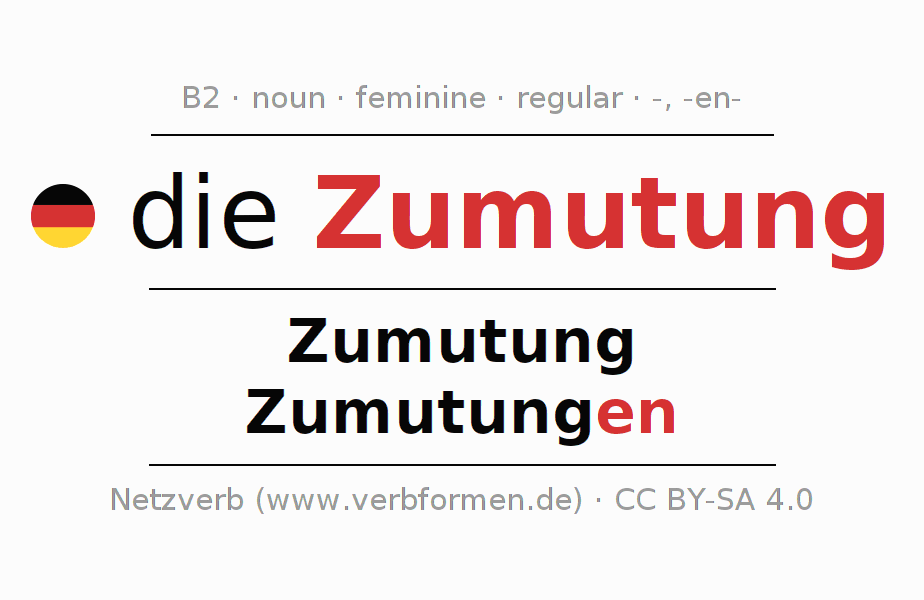 - Singular: die Zumutung, der Zumutung, der Zumutung, die Zumutung