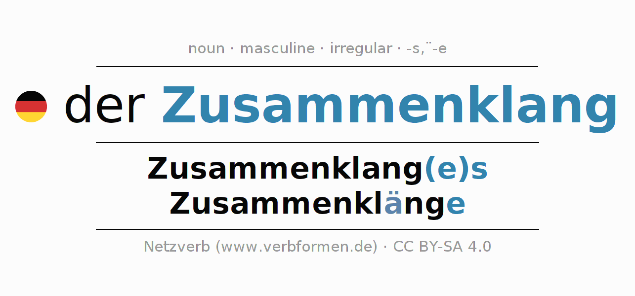 Nom. | der Zusammenklang | die Zusammenklänge |