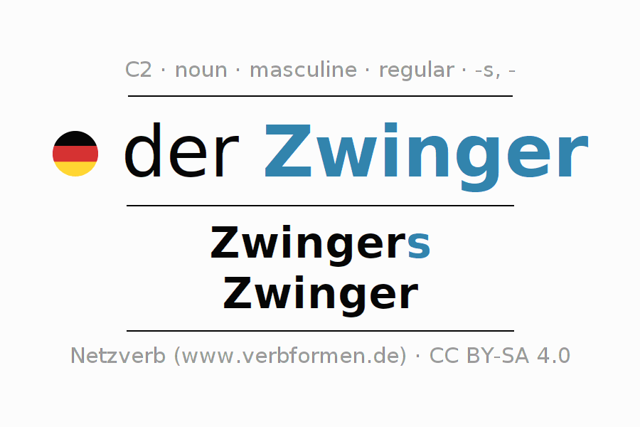 - Singular: der Zwinger, des Zwingers, dem Zwinger, den Zwinger